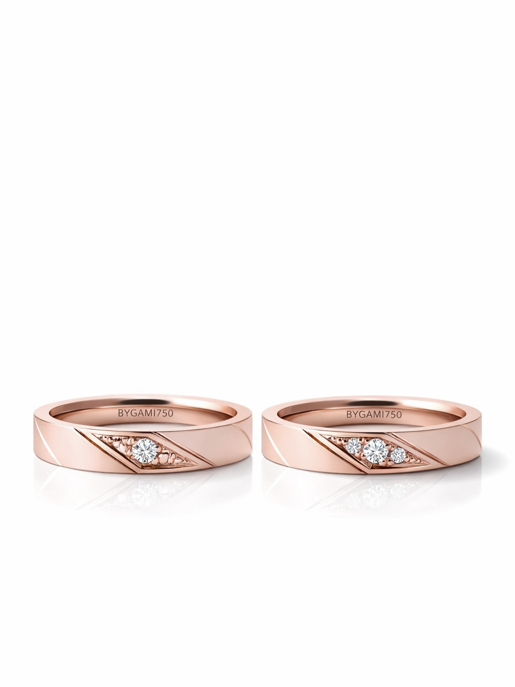 사랑이 만나는 중심을 다이아몬드로 담아낸 웨딩 밴드입니다.